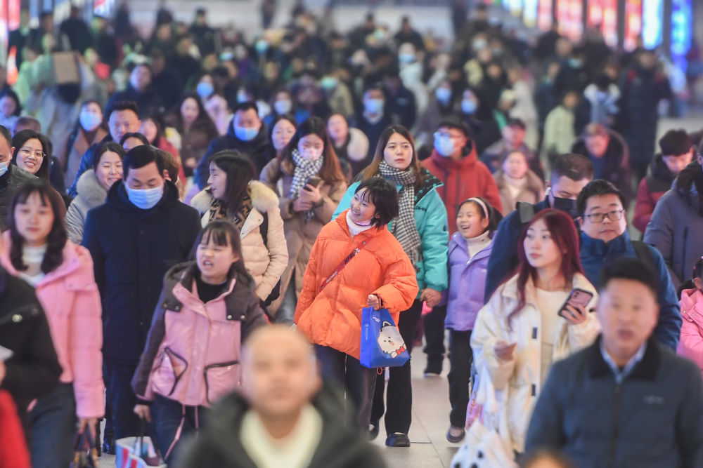 1月26日,在武漢漢口火車站,旅客在春運(yùn)首日出行。