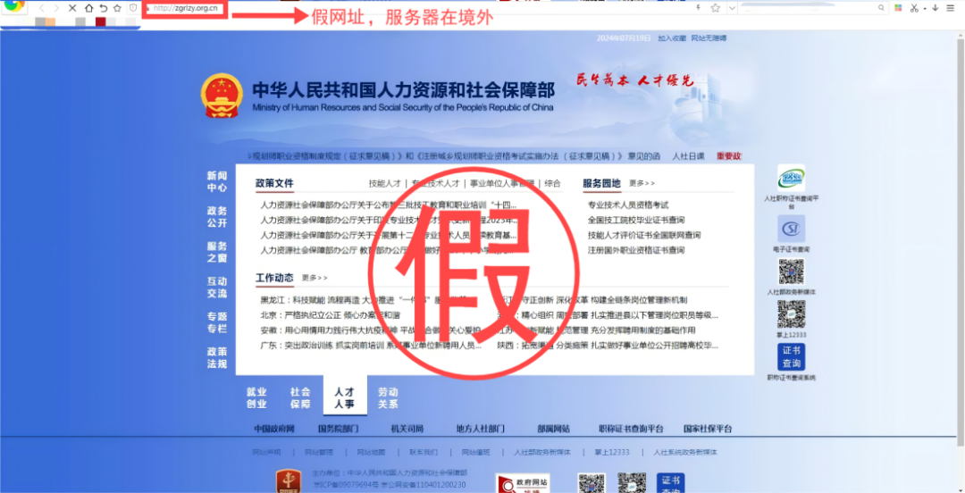 (仿冒人力資源和社會保障部相關(guān)網(wǎng)站,網(wǎng)址域名多次跳轉(zhuǎn))