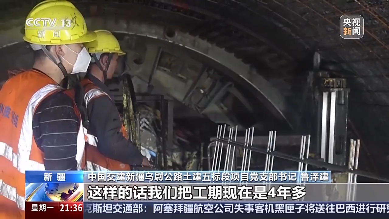 中國(guó)交建新疆烏尉公路包項(xiàng)目總經(jīng)理部總經(jīng)理 周政:對(duì)。因?yàn)槲覀冏罡叻逶诶镞呌?4個(gè)工作面同時(shí)施工,人員也高達(dá)3000人左右,所以對(duì)人員的安全保障我們也是采取了很多新辦法。