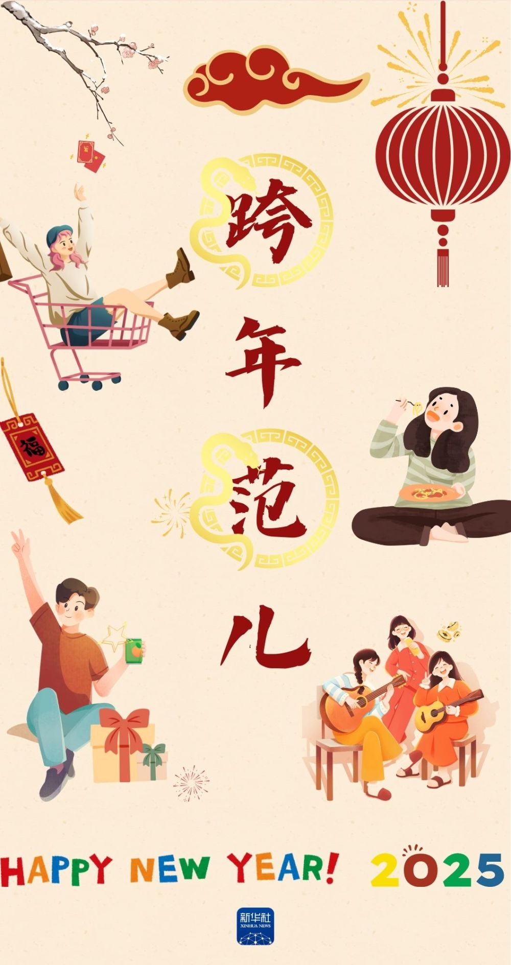 隨著日歷一頁頁剝落,2024年,這首悠揚的長詩即將寫到終章,屬于每個人的精彩故事將要翻開新篇章。約上三五好友奔赴遠方,看一場絢爛煙火;舒服地窩在家里,來一場年末大掃除;徜徉在音樂律動的海洋,寫下與舊年告別的浪漫注腳……年輕的你,會用怎樣的姿勢邁進2025年?跟隨一組海報,看看哪一款是你的跨年“范兒”!