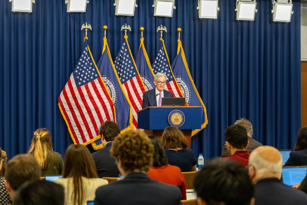 2024年9月18日,美國(guó)聯(lián)邦儲(chǔ)備委員會(huì)主席鮑威爾在華盛頓出席記者會(huì)。新華社記者胡友松攝