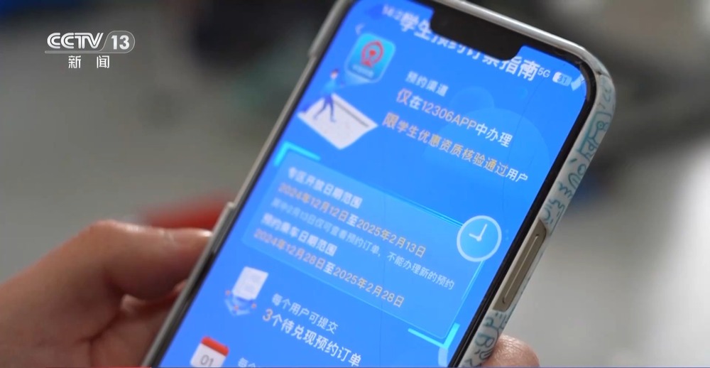 賈小鵬:打開(kāi)12306客戶端之后就可以看到學(xué)生購(gòu)票專項(xiàng)服務(wù)專區(qū),點(diǎn)進(jìn)去后要先進(jìn)行學(xué)生優(yōu)惠資質(zhì)核驗(yàn)。完成核驗(yàn)之后,根據(jù)提示填寫目的地、到達(dá)地、出發(fā)地、出發(fā)時(shí)間、車次和席別之后,就可以確認(rèn)訂單,然后等待預(yù)約通知。