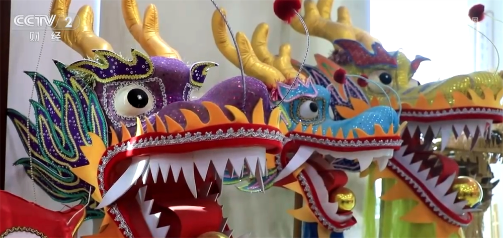 在江西南昌青云譜區(qū)的一家龍燈生產(chǎn)基地,數(shù)百平方米的廠房內(nèi)設(shè)置了龍頭、龍身、龍衣、龍尾等制作區(qū)域,50多名工人都在有條不紊地作業(yè)。在發(fā)貨區(qū),師傅們忙著按訂單裝貨打包。