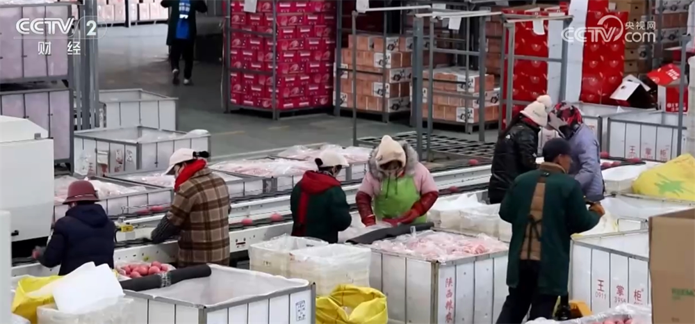 在延安洛川縣,一大早,裝載蘋果的冷鏈車已排起長隊。為了抓住春節(jié)銷售黃金期,銷售企業(yè)策劃了年貨節(jié)、春節(jié)特供等系列促銷活動,線上線下同步推進,全方位促銷。