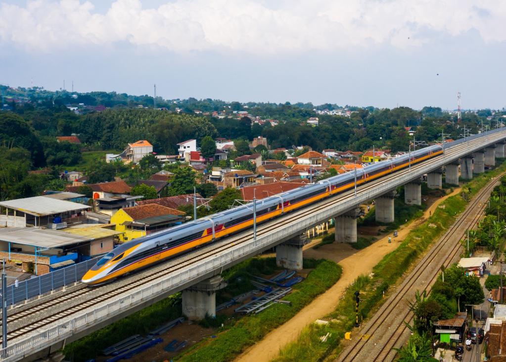 這是2023年5月22日拍攝的行駛在印度尼西亞雅萬(wàn)高鐵沿線的雅萬(wàn)高鐵綜合檢測(cè)列車(無(wú)人機(jī)照片)。新華社發(fā)(中國(guó)鐵路國(guó)際有限公司供圖)