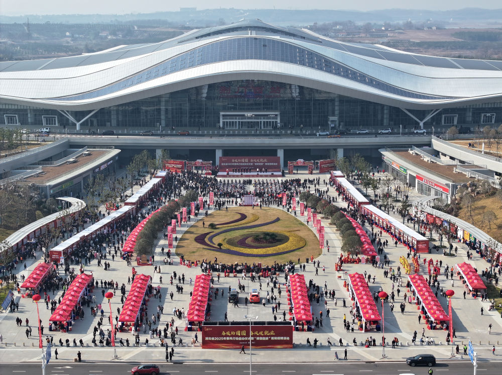 1月12日下午,湖北荊門(mén)西站東廣場(chǎng)前,湖北省2025年春風(fēng)行動(dòng)啟動(dòng)儀式暨“接您回家”現(xiàn)場(chǎng)招聘活動(dòng)舉行。(受訪者供圖)