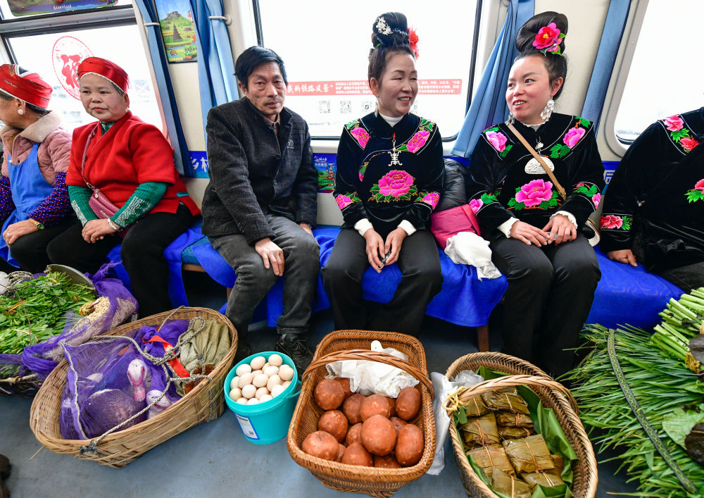 近年來,搭上這趟“慢火車”外出賣菜的村民較多,列車成了熱鬧的“移動集市”,是鄉(xiāng)親們走親訪友的“幸??燔嚒保前汛笊嚼锏霓r特產品送到山外售賣的“致富快車”,被村民們稱為“村火車”。