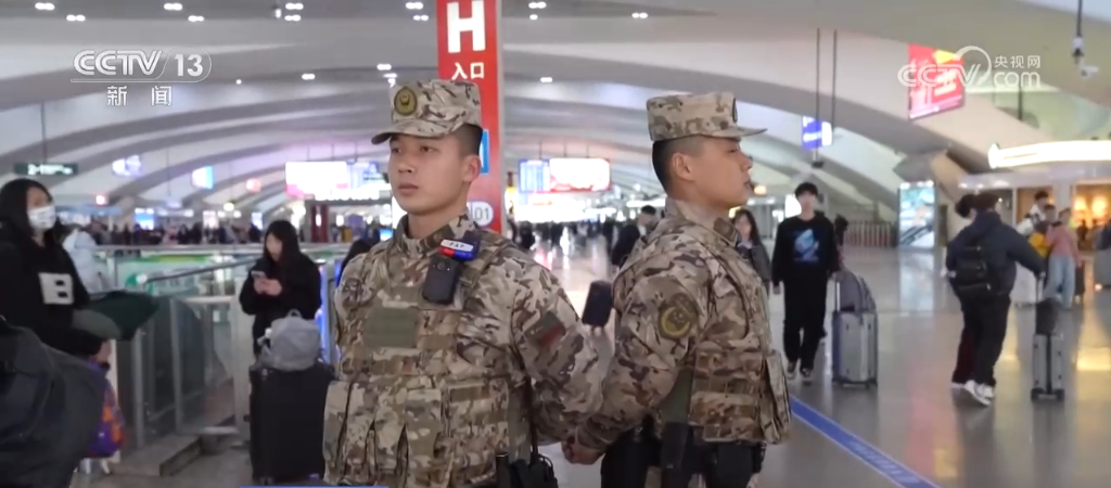 央視網(wǎng)消息:春運期間,全國各地旅客出行顯著增加,擔負執(zhí)勤任務的武警部隊官兵堅守執(zhí)勤一線,科學進行人員編組,在機場、高鐵等人流聚集處加強警戒、疏導巡邏,為旅客安全出行保駕護航。