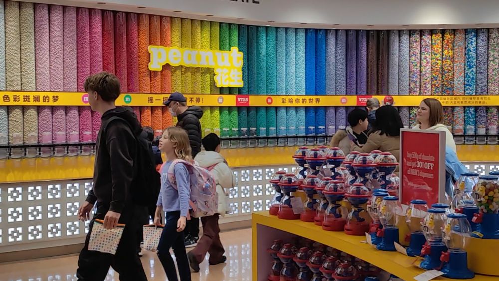 在南京路上的第一食品商店,大白兔奶糖、汪裕泰茶葉、石庫門黃酒都是老外喜歡的“老字號(hào)”伴手禮。同樣搭上這波消費(fèi)熱潮的還有各種新“國貨”品牌。