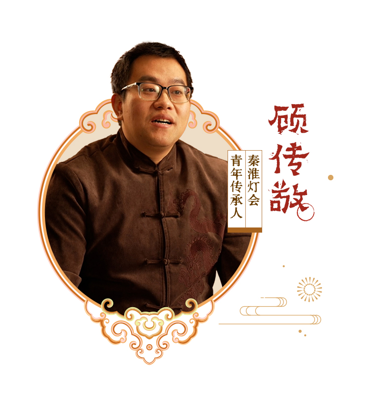 我的父親叫顧業(yè)亮,他像一盞明燈,為我照亮了燈彩的世界。我的兒子叫顧萬年,名字是父親取的,他希望秦淮燈會能夠一直傳下去。我叫顧傳敬,我希望接過父親手里的接力棒,把燈彩傳承好,像我名字一樣,因為傳承而受到尊敬。