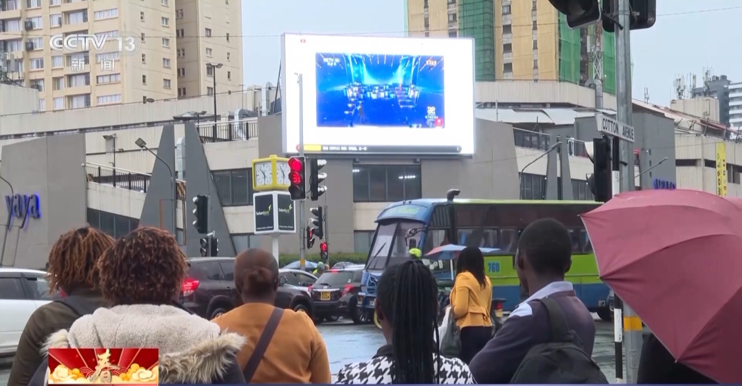 肯尼亞首都內(nèi)羅畢商場大屏播放總臺(tái)蛇年春晚