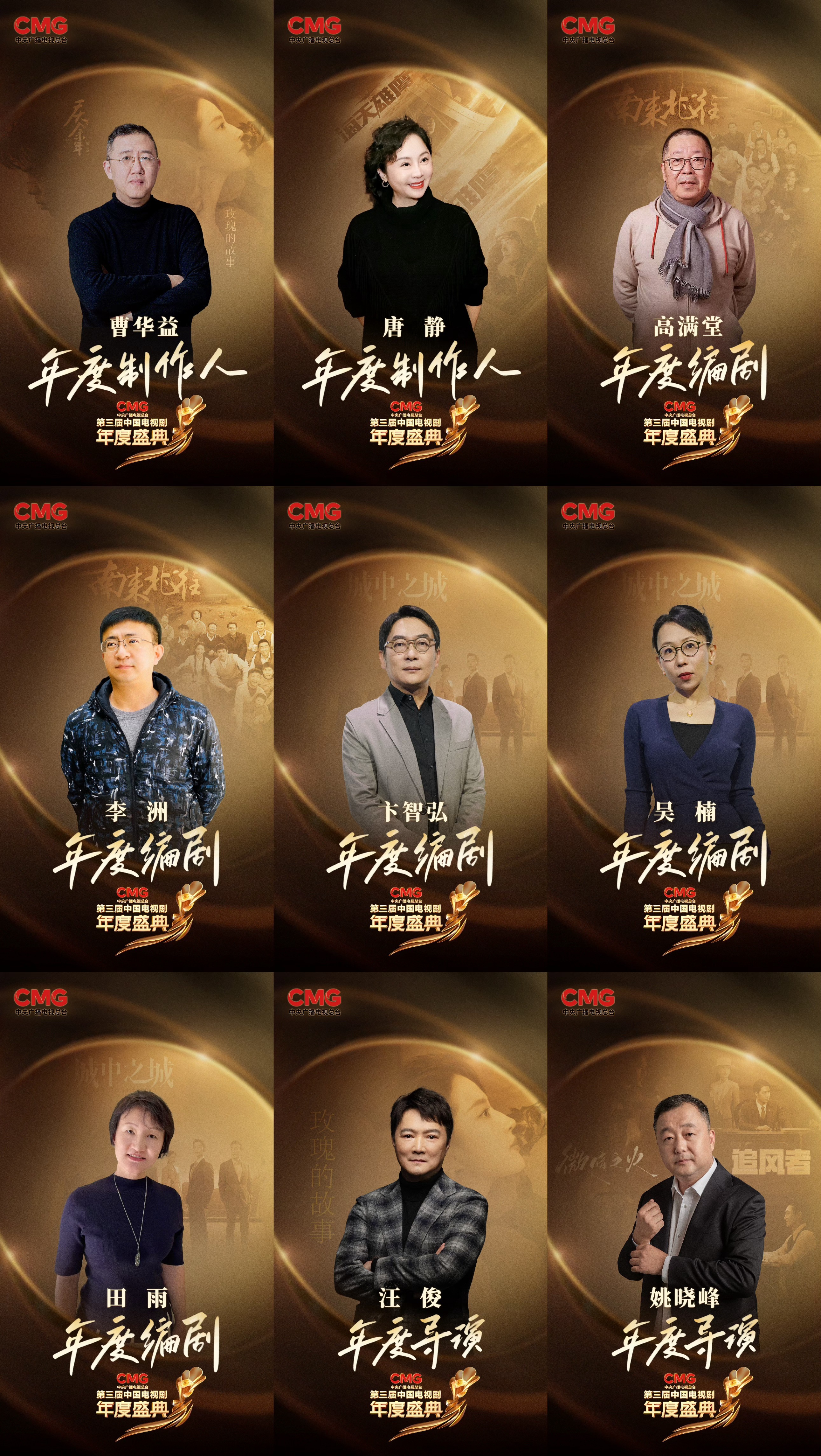 在創(chuàng)作創(chuàng)新與技術革新雙重驅動下,中國電視劇幕后工作者踔厲奮發(fā)、推陳出新,打磨出反映新時代、新氣象、新成就的誠意之作?!睹倒宓墓适隆贰稇c余年第二季》出品人曹華益、《海天雄鷹》出品人唐靜;《南來北往》編劇高滿堂、李洲,《城中之城》編劇卞智弘、吳楠、田雨;《玫瑰的故事》導演汪俊、《微暗之火》《追風者》導演姚曉峰分別獲得“年度制作人”“年度編劇”“年度導演”榮譽。