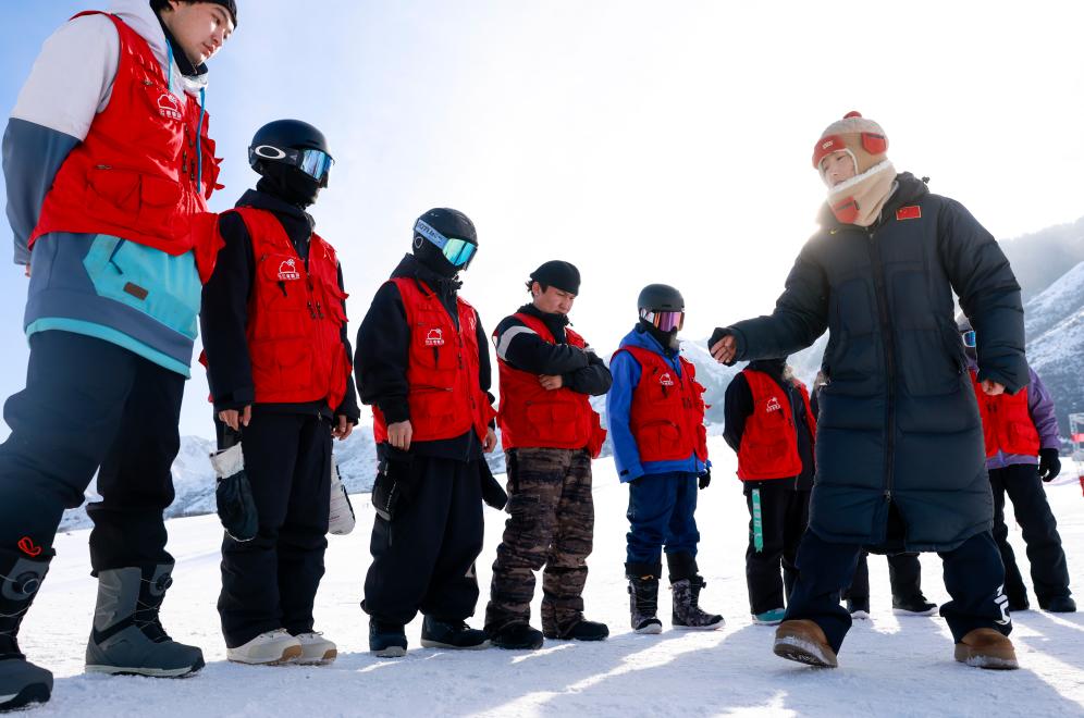 2024年12月25日,在位于烏魯木齊縣的新疆白云國際滑雪場,烏魯木齊縣永豐中學的學生在上滑雪課。新華社記者 王菲 攝