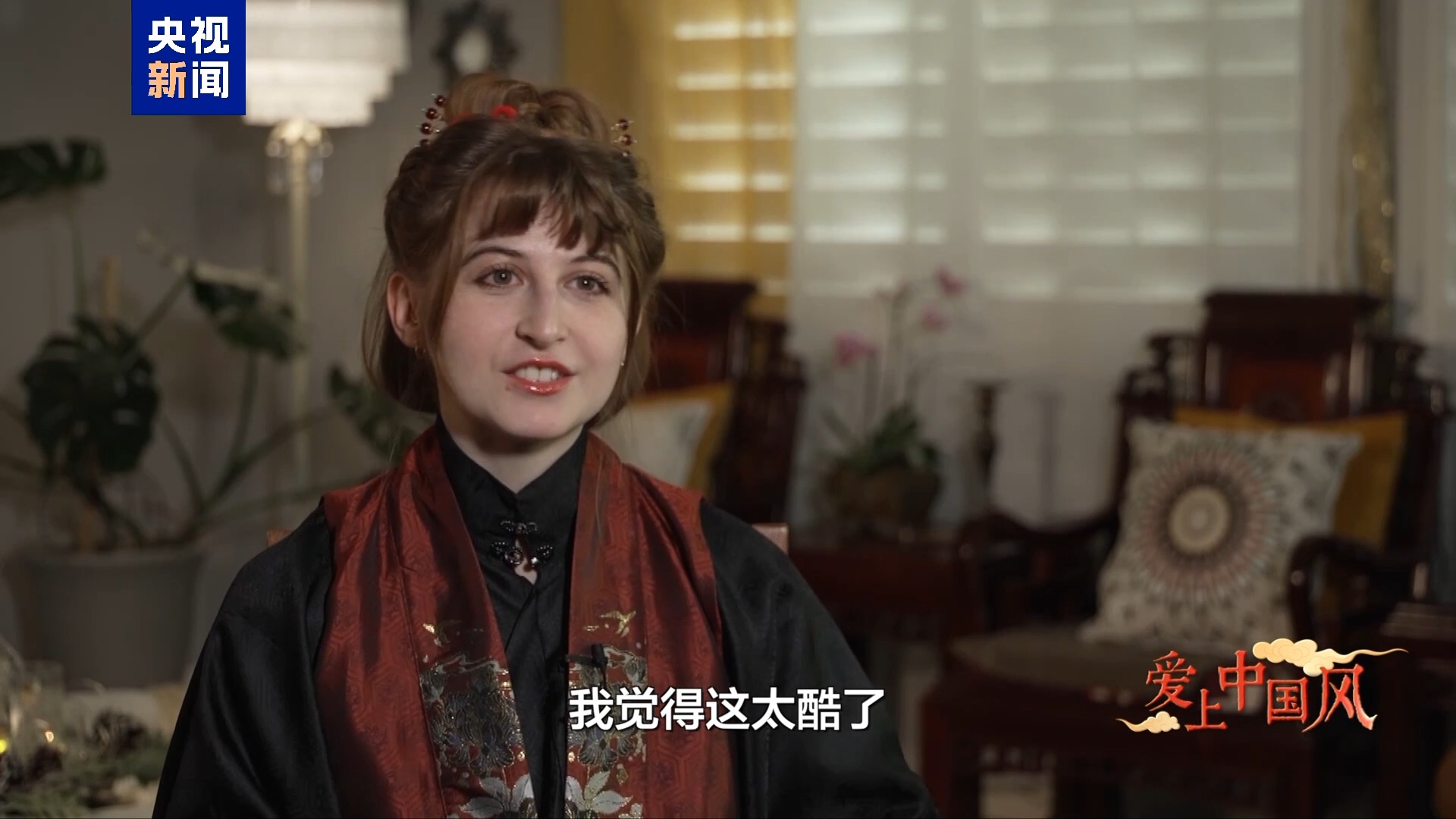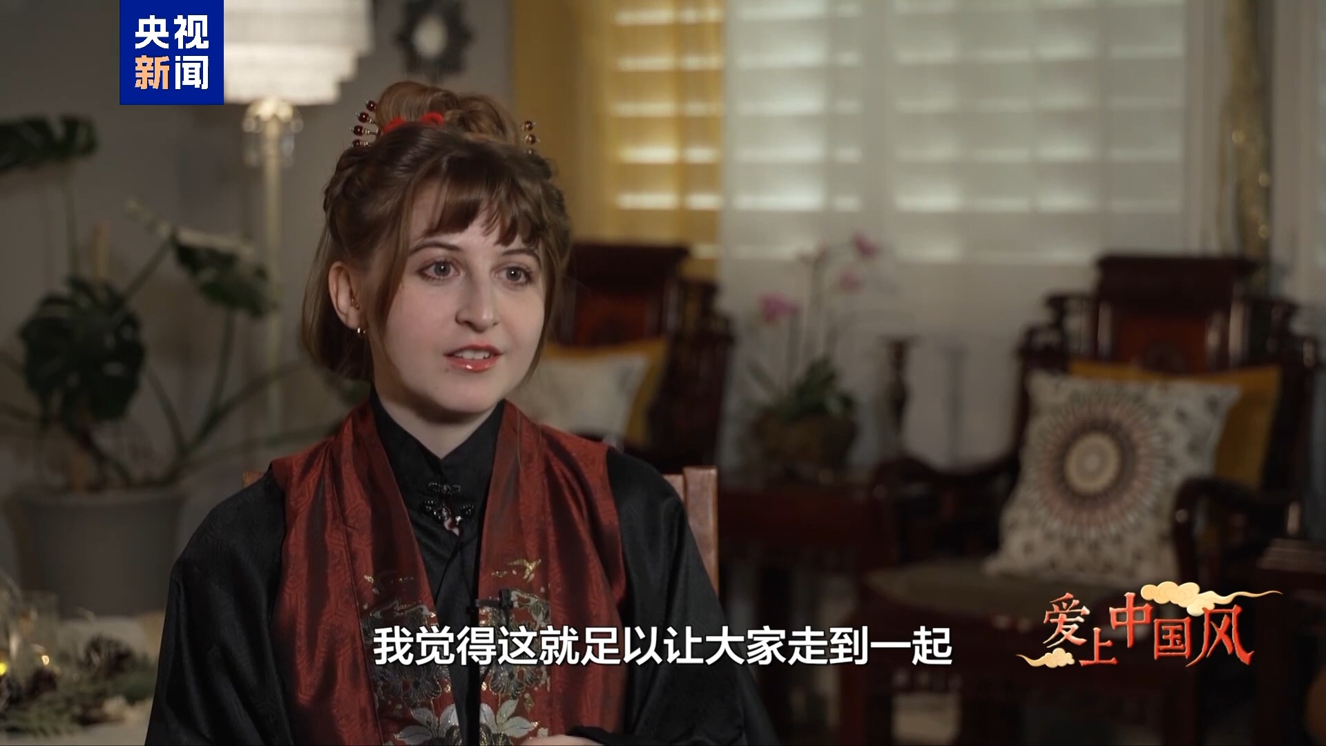 瑞秋:我在瀏覽網(wǎng)站的時候,我非常喜歡瀏覽時尚視頻,當(dāng)時看到了一個關(guān)于中國漢服的視頻,我當(dāng)時想這是什么?他們說,這是漢服的復(fù)興,年輕人正在把它帶回來。我覺得這太酷了。