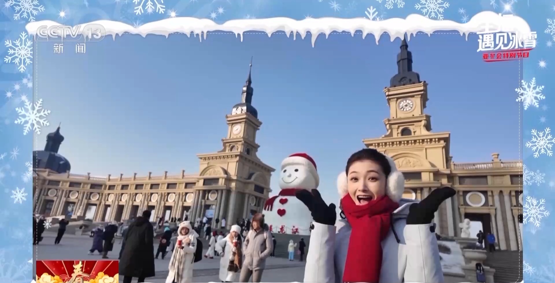 主播 遲茜:大家知道為什么叫“濱濱”和“妮妮”嗎?因為這是哈爾濱的濱,這是您好的您,諧音“妮妮”,表達了哈爾濱歡迎您,亞冬會歡迎您。