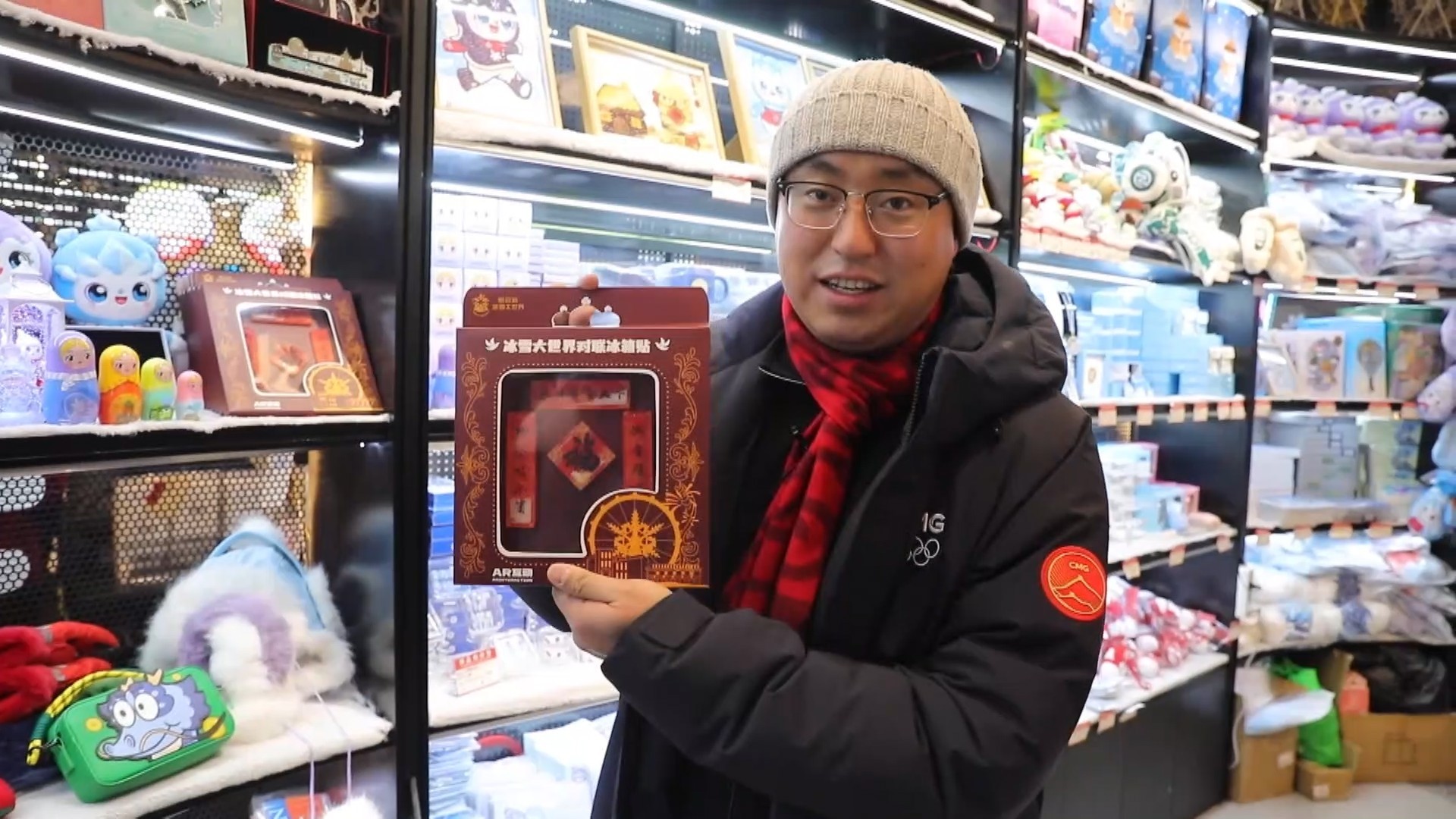 在哈爾濱冰雪大世界,您還可以把年味帶回家,文創(chuàng)店里總臺春晚系列產品、冰雪大世界春節(jié)對聯(lián)冰箱貼更是年味十足。