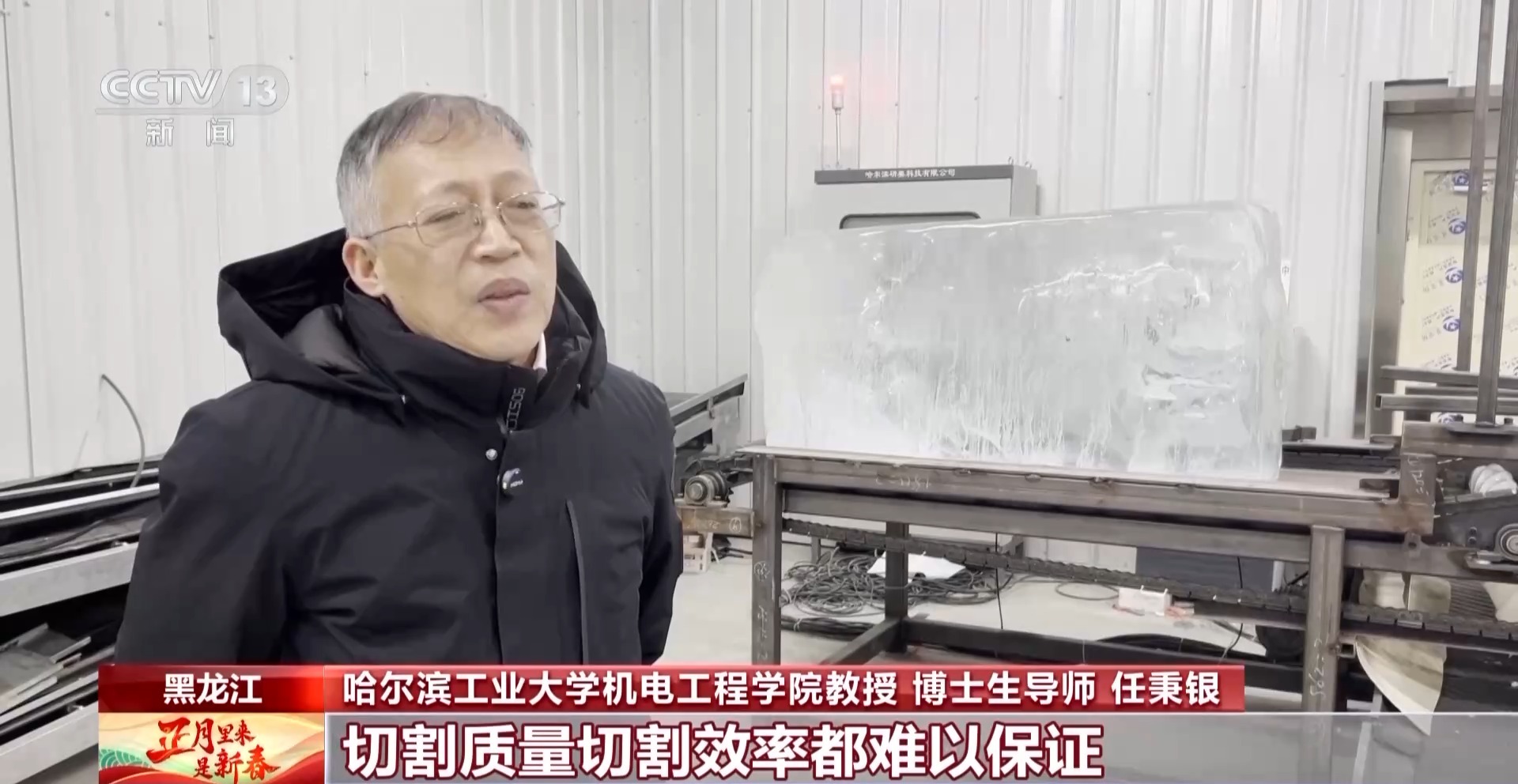 哈爾濱工業(yè)大學(xué)機(jī)電工程學(xué)院教授、博士生導(dǎo)師 任秉銀:這么多年來建冰雕設(shè)施用的冰一直都是人工在切,使用手工鋸,切割質(zhì)量切割效率都難以保證。在這種情況下,對智能自動化生產(chǎn)標(biāo)準(zhǔn)冰砌塊的需求十分迫切。
