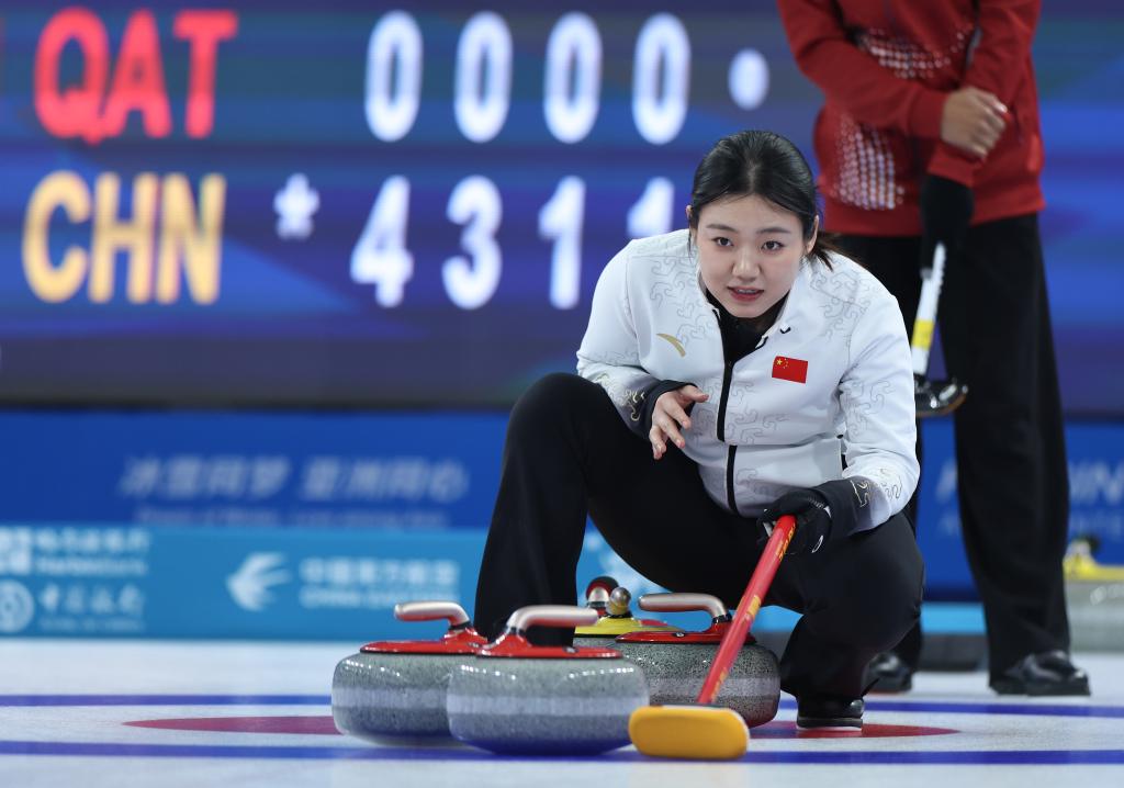 哈爾濱亞冬會(huì)冰壺混雙循環(huán)賽6日完成全部比賽,中國(guó)隊(duì)先以6:4戰(zhàn)勝韓國(guó)隊(duì),又以10:1輕取卡塔爾隊(duì),晉級(jí)半決賽。
