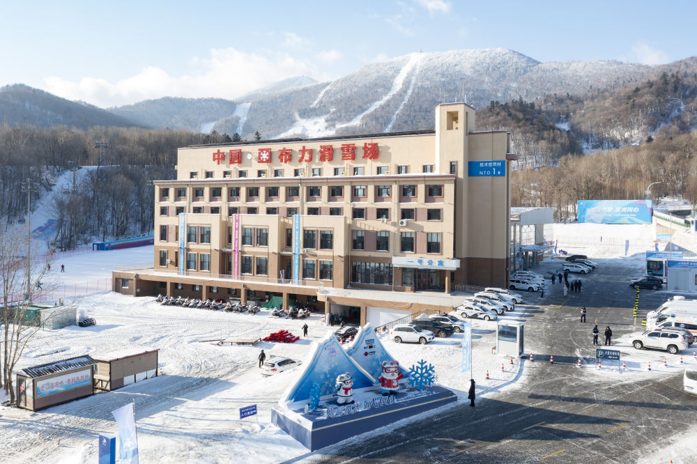 這是1月16日拍攝的位于亞布力滑雪場內(nèi)的第九屆亞冬會雪上賽區(qū)一角(無人機照片)。新華社記者謝劍飛攝