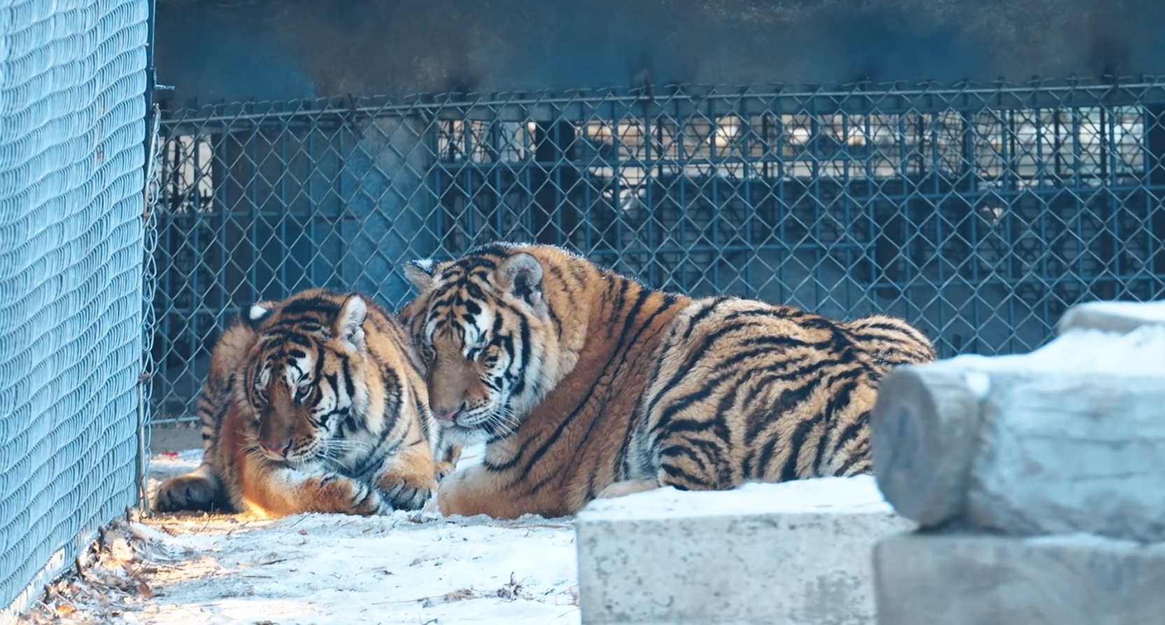 飼養(yǎng)員 楊忠亮:它們兩個(gè)現(xiàn)在是在一歲多快到一歲半了,體重也能達(dá)到150多斤以上了。我們給它提供了一個(gè)比較大的活動(dòng)場地,讓它們能活動(dòng)得比較開闊,能更好的與游客去見面。這個(gè)年齡段也是非常愛打愛斗愛鬧的年齡。游客隨時(shí)來到我們東北虎林園,也會(huì)隨時(shí)的看到它們和游客很好的一個(gè)互動(dòng)。