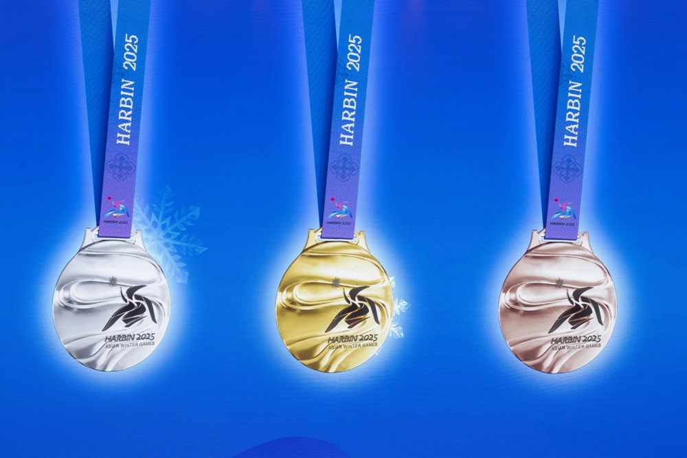 這是亞冬會(huì)獎(jiǎng)牌“競速精神”的正面(2024年10月30日攝)。