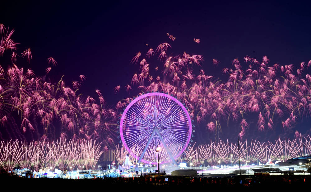 2025年2月7日,焰火在開幕式分會(huì)場上空綻放。
