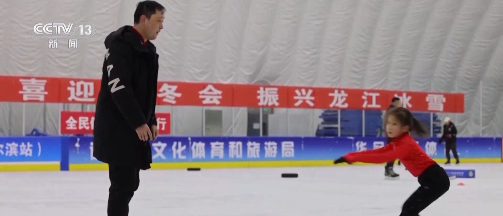 熱鬧的地方可不只在冰雪大世界,在一家冰上運(yùn)動(dòng)氣膜館,雖然已經(jīng)是夜晚,但是館內(nèi)依舊人聲鼎沸,在公益免費(fèi)的時(shí)段,附近的居民群眾都可以來到這里滑冰、打冰球。這里還會(huì)安排學(xué)校的冰雪運(yùn)動(dòng)培訓(xùn)課程,孩子們?cè)诮叹毜闹笇?dǎo)下認(rèn)真學(xué)習(xí)滑冰技巧。同時(shí),這里還經(jīng)常舉辦夜間冰雪運(yùn)動(dòng)賽事,吸引眾多冰雪運(yùn)動(dòng)愛好者參與。