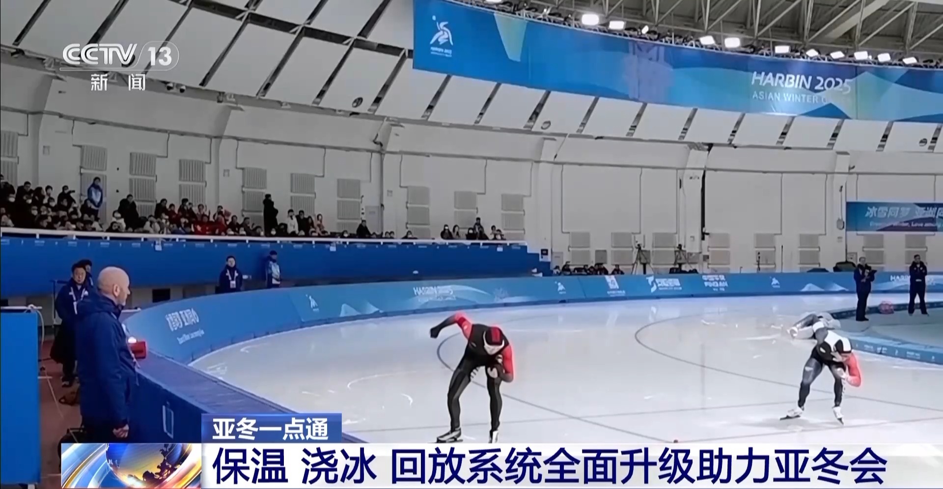 總臺記者 季熠非:位于哈爾濱市的黑龍江省冰上訓(xùn)練中心速滑館,今天在這里進(jìn)行的是亞冬會女子500米、男子5000米和女子短距離團(tuán)體追逐的三項比賽。