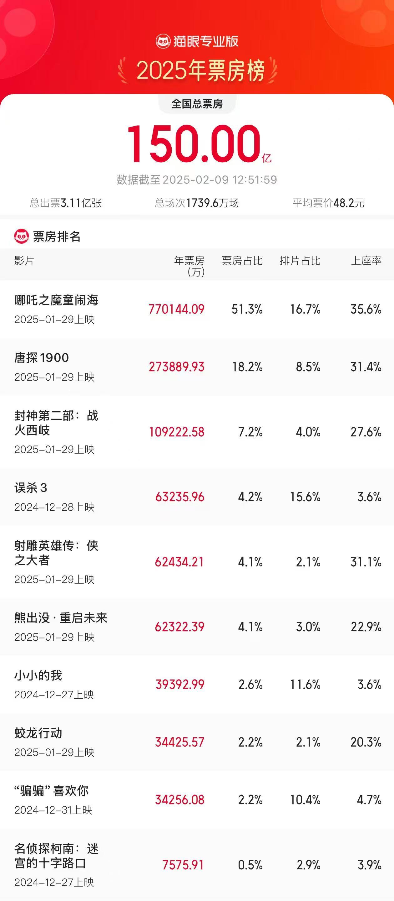 2025年度票房(含預(yù)售實(shí)時(shí))