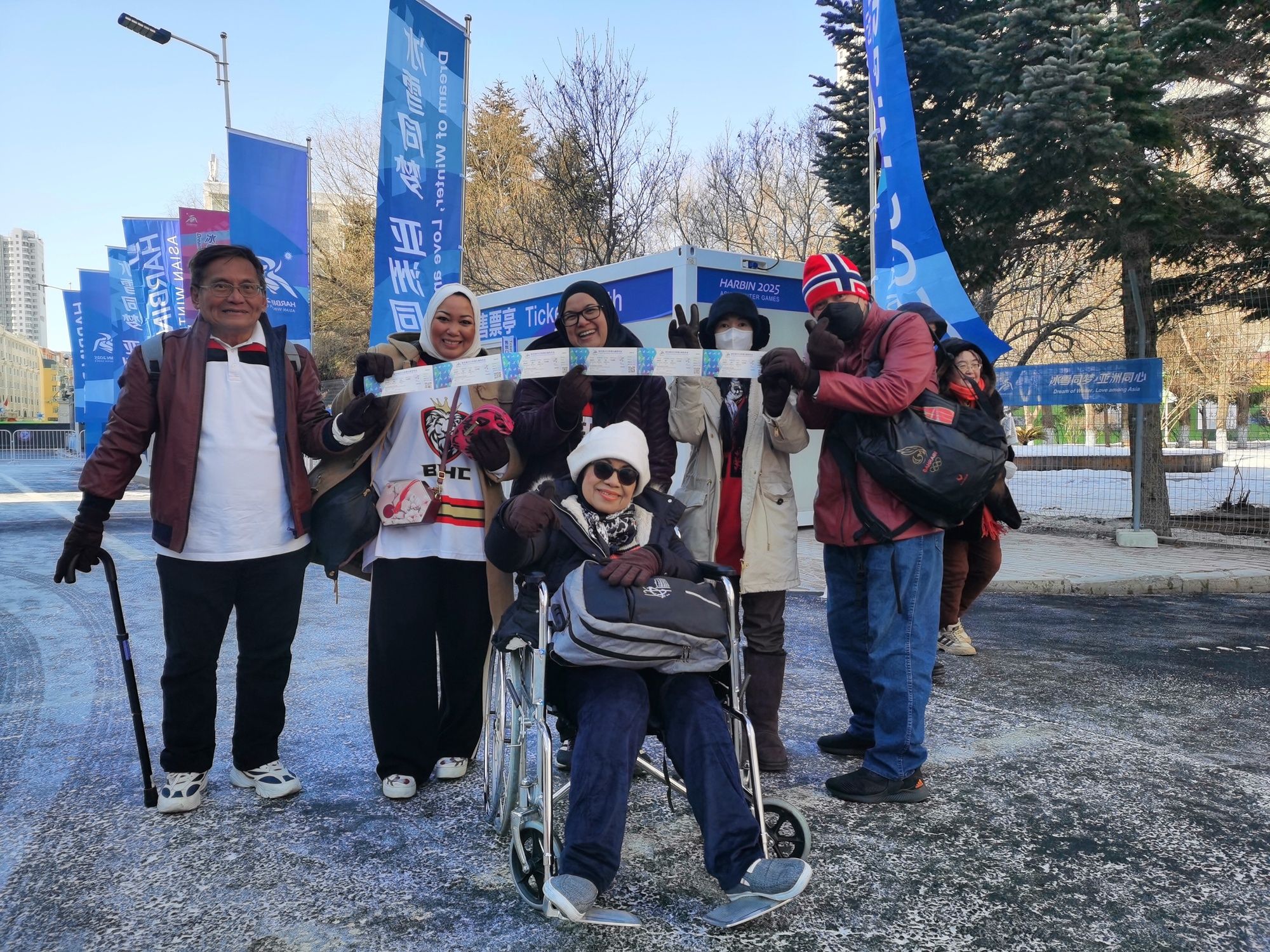 泰國觀眾阿伊莎的未婚夫是巴林男子冰球隊的7號隊員。亞冬會開幕前夕,阿伊莎帶著母親、姐妹等一家六口,從曼谷直飛到哈爾濱觀賽助威。她告訴記者,母親因為行動不便需要坐輪椅觀賽,在哈爾濱,他們一家得到了賽場工作人員的悉心照顧。