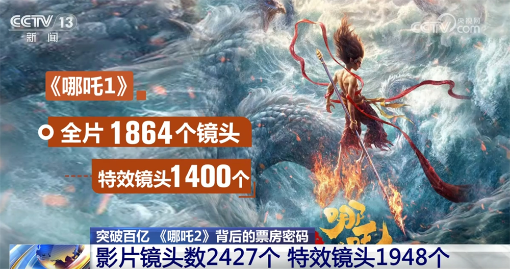 據(jù)電影主創(chuàng)團(tuán)隊(duì)提供的數(shù)據(jù):《哪吒1》,也就是《哪吒之魔童降世》全片1864個鏡頭,特效鏡頭1400個;而《哪吒2》,鏡頭數(shù)達(dá)到2427個,其中特效鏡頭1948個。影片中的每一個特效鏡頭、每一幀畫面都是138家動畫公司、4000多名動畫人的合力托舉。