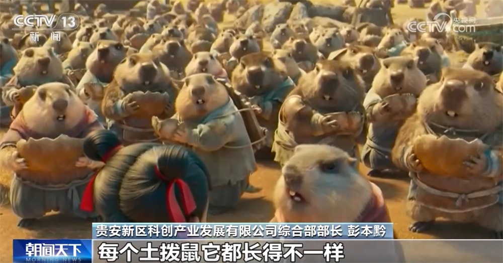 貴安新區(qū)科創(chuàng)產(chǎn)業(yè)發(fā)展有限公司綜合部部長彭本黔稱:“導(dǎo)演要求每一個天兵都要有自己的一個構(gòu)圖,每個土撥鼠都長得不一樣,對渲染的算力要求很高,要是渲不好就很模糊了。整個《哪吒之魔童鬧海》制作耗時5年,在我們這里渲染基本上都用了小三年的時間。”