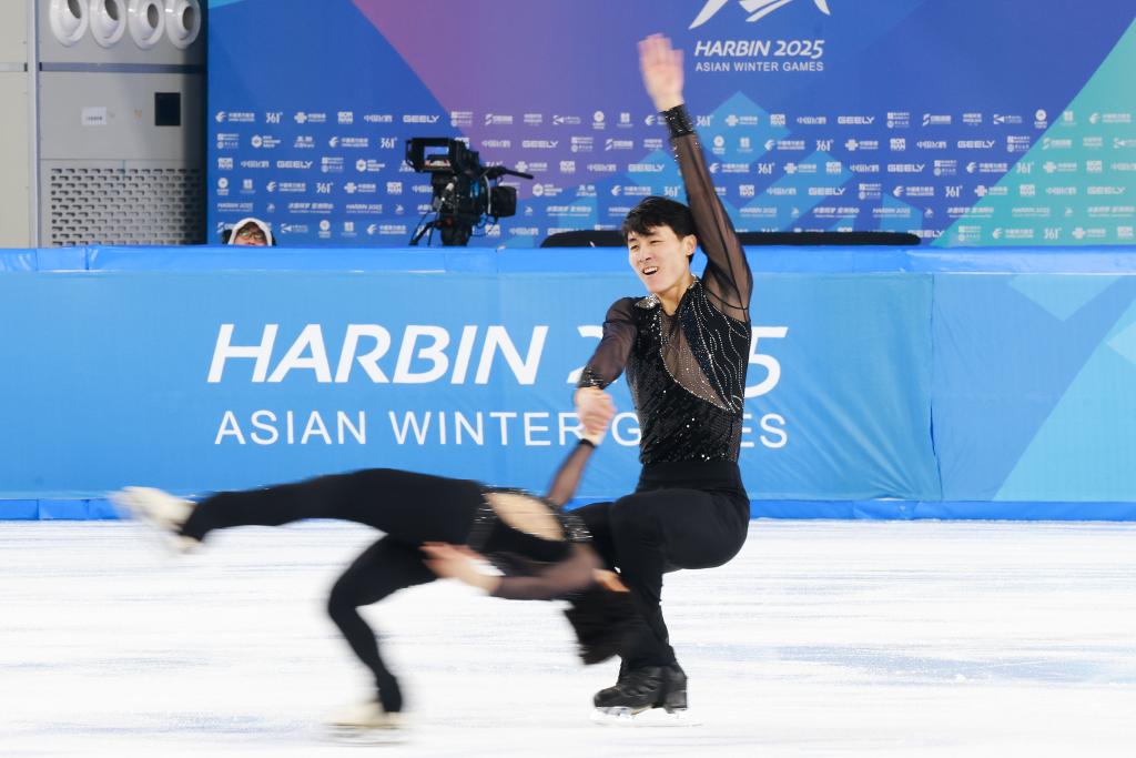 2月11日,朝鮮組合廉太鈺/韓錦澈(右)在比賽中。新華社記者 許雅楠 攝