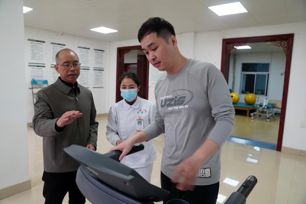 2月18日,韋軍在廣西南寧市西鄉(xiāng)塘區(qū)衡陽街道南鐵社區(qū)衛(wèi)生服務(wù)中心走訪,了解衛(wèi)生服務(wù)中心對(duì)群眾進(jìn)行運(yùn)動(dòng)指導(dǎo)的情況。新華社記者 陳露緣 攝