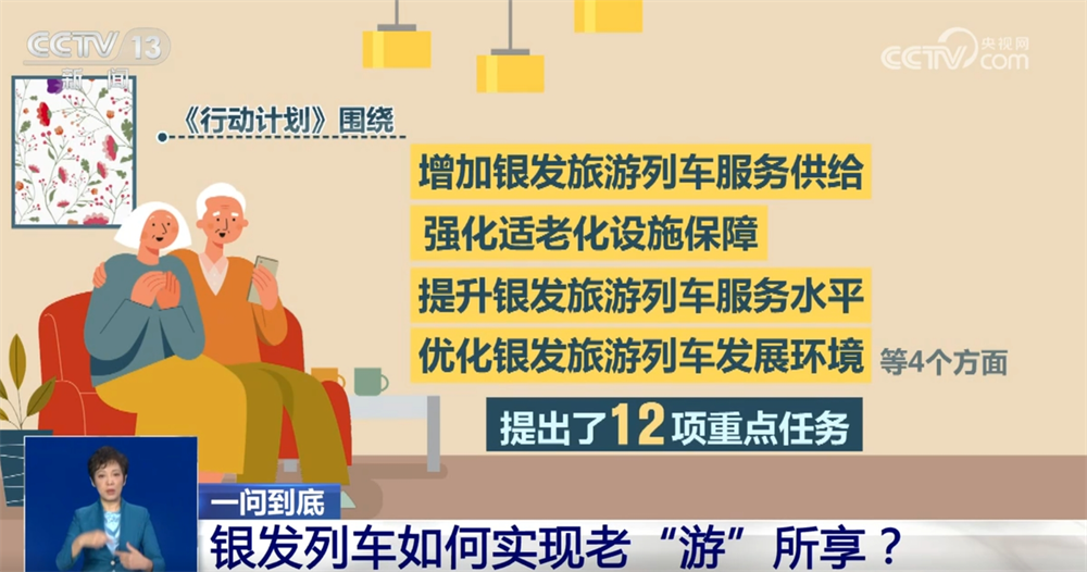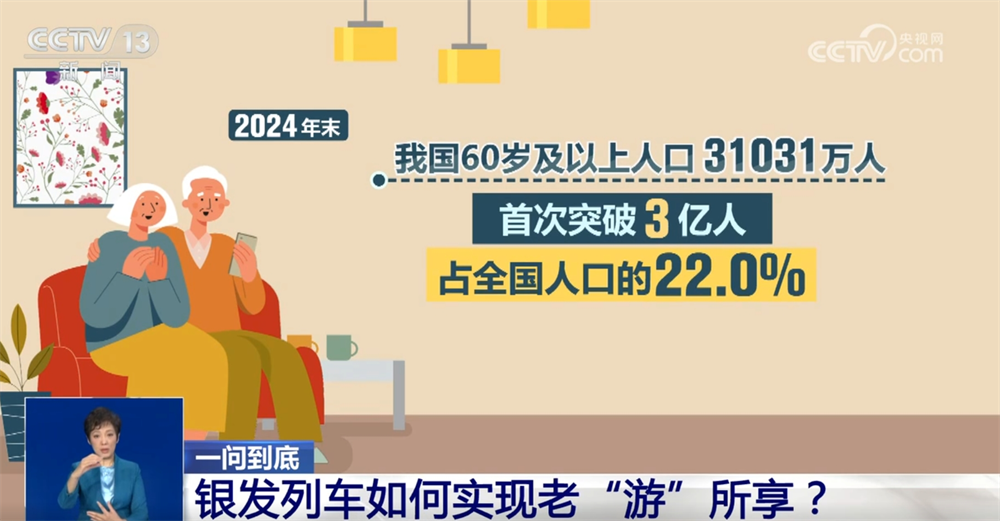 數(shù)據(jù)顯示,2024年末,我國(guó)60歲及以上人口達(dá)到31031萬(wàn)人,首次突破3億人,占全國(guó)人口的22.0%,老年人對(duì)旅游服務(wù)的需求也日益增長(zhǎng)。正是為了應(yīng)對(duì)這一需求,今年年初,商務(wù)部等九單位發(fā)布《關(guān)于增開(kāi)銀發(fā)旅游列車(chē)促進(jìn)服務(wù)消費(fèi)發(fā)展的行動(dòng)計(jì)劃》,圍繞增加銀發(fā)旅游列車(chē)服務(wù)供給、強(qiáng)化適老化設(shè)施保障、提升銀發(fā)旅游列車(chē)服務(wù)水平、優(yōu)化銀發(fā)旅游列車(chē)發(fā)展環(huán)境等4個(gè)方面,提出了12項(xiàng)重點(diǎn)任務(wù)。精準(zhǔn)對(duì)接老年群體的旅游訴求,乘坐高鐵實(shí)現(xiàn)“快旅慢游”,讓他們更舒適地追尋“詩(shī)和遠(yuǎn)方”。那么,銀發(fā)列車(chē)和普通列車(chē)有何區(qū)別?都能開(kāi)去哪兒?車(chē)票怎么買(mǎi)?乘坐銀發(fā)列車(chē)要注意什么?接下來(lái)一問(wèn)到底。