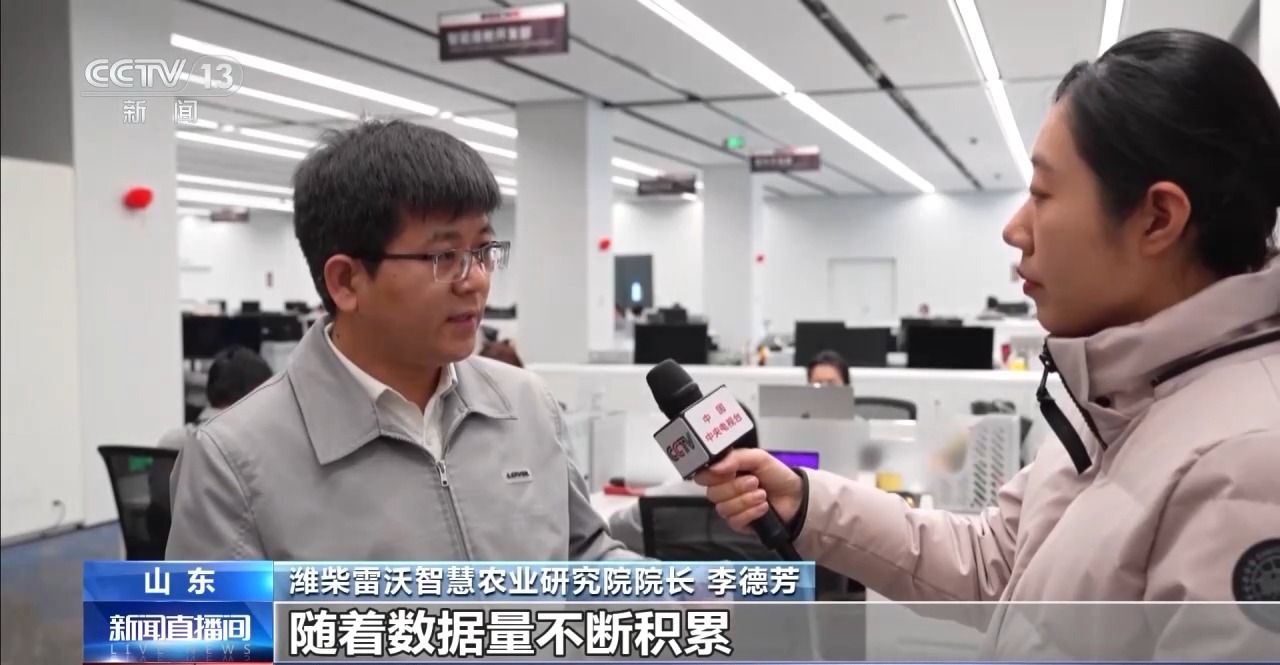 濰柴雷沃智慧農業(yè)研究院院長 李德芳:實際上農機變成了一個可移動的智能終端,它上面搭載了各種傳感器,作業(yè)過程中去采集各種作業(yè)的信息,這些數(shù)據(jù)到了(AI)模型去做一個融合,這樣的話幫助農機作業(yè)更精準。