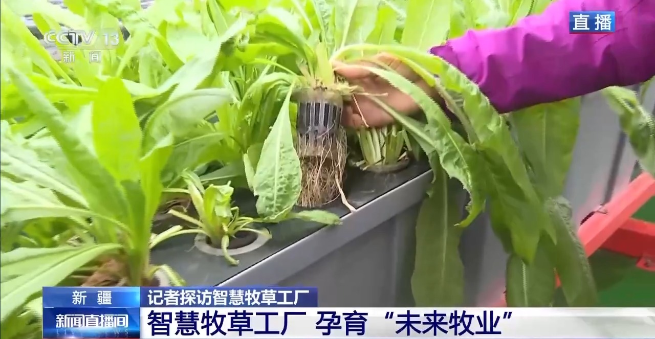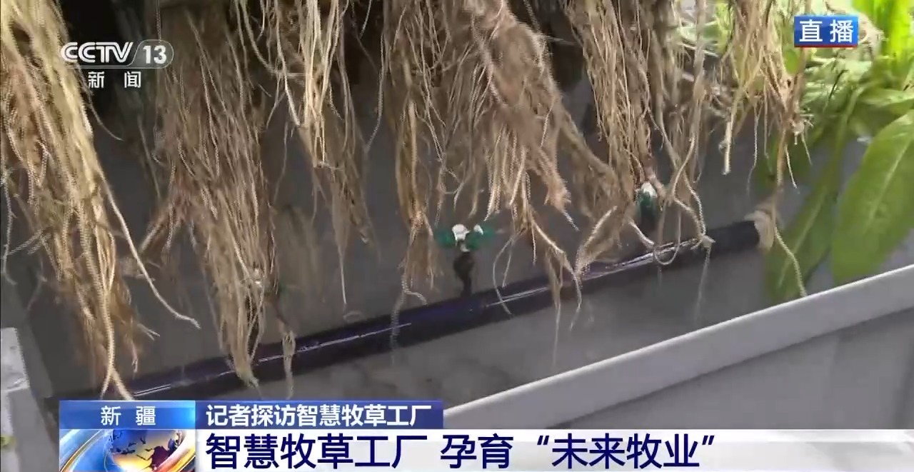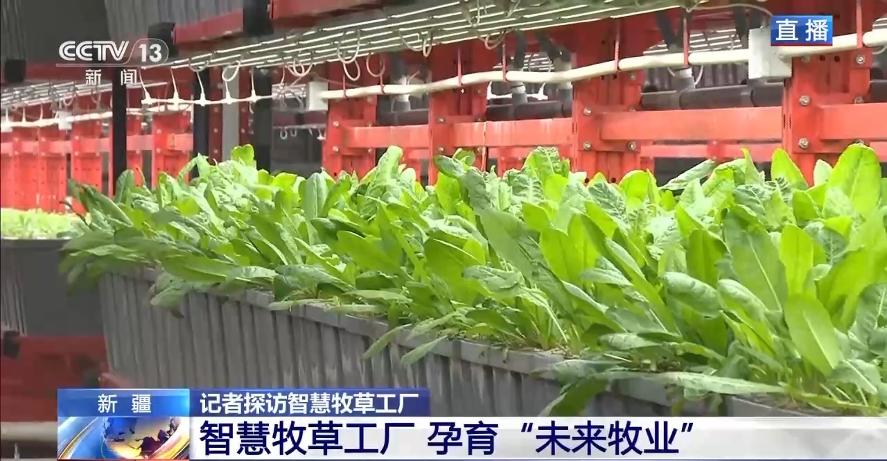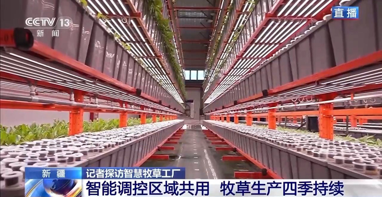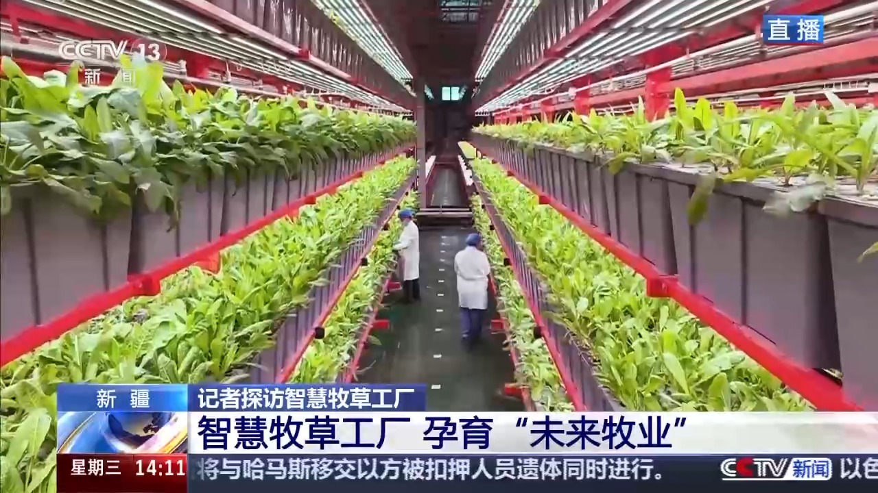 總臺記者 崔寧:說到牧草,大家會想到一望無際的大草原,會想到風吹草低見牛羊的千里沃野,但我現(xiàn)在所在的新疆圖木舒克市智慧牧草工廠里看到的是另外一番景象,廠房里沒有土壤,沒有四季輪回,牧草卻在這里生長得郁郁蔥蔥,而且看起來它的葉片也非常壯實。