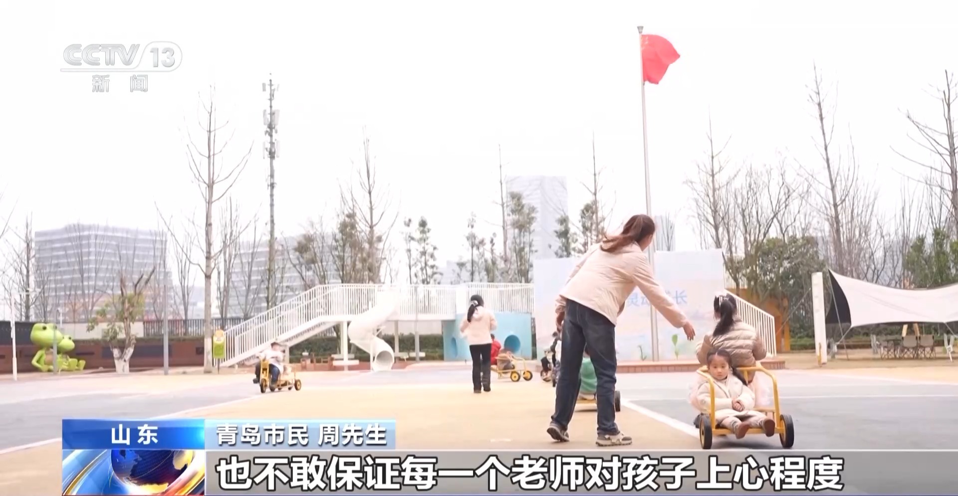 青島市民 周先生:自己的孩子,我都有時(shí)候上不了心,你送去托幼機(jī)構(gòu)以后,很多孩子在一起,也不敢保證每一個(gè)老師對(duì)孩子的上心程度。