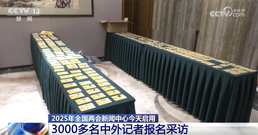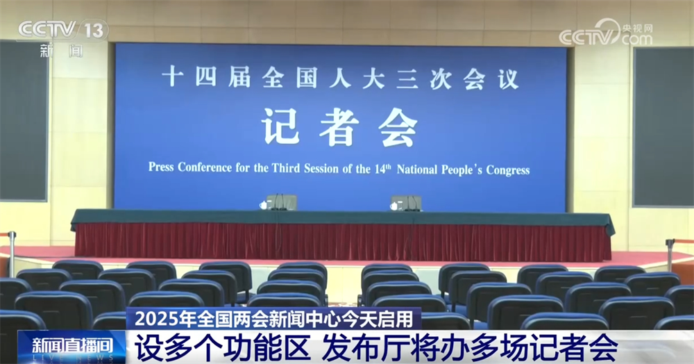 與往年相同,今年全國(guó)兩會(huì)新聞中心設(shè)置了多個(gè)功能區(qū),其中,新聞發(fā)布廳和采訪室等已經(jīng)布置完畢。