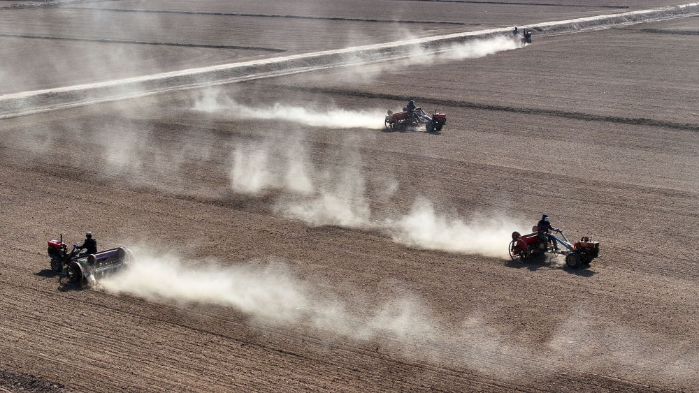 近日,隨著天氣逐漸轉(zhuǎn)暖,寧夏銀川市賀蘭縣各鄉(xiāng)鎮(zhèn)積極推進(jìn)春耕生產(chǎn)工作。 新華社記者 王鵬 攝