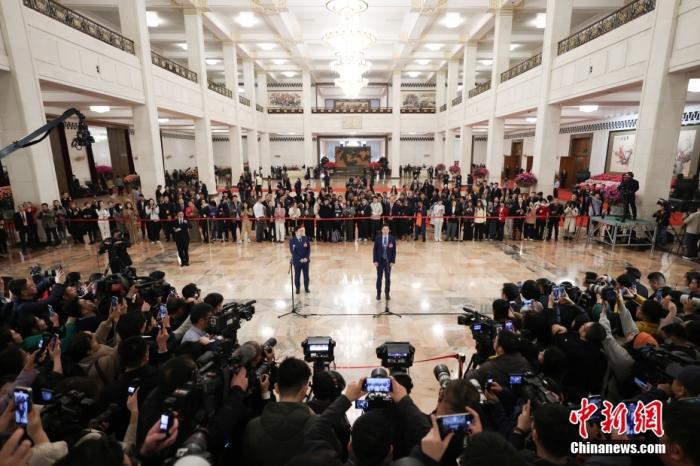 3月5日,十四屆全國人大三次會議首場“代表通道”集中采訪活動在北京人民大會堂舉行。全國人大代表、小米集團(tuán)創(chuàng)始人、董事長兼首席執(zhí)行官雷軍(右)、全國人大代表、海爾集團(tuán)董事局主席、首席執(zhí)行官周云杰接受采訪。中新社記者 富田 攝
