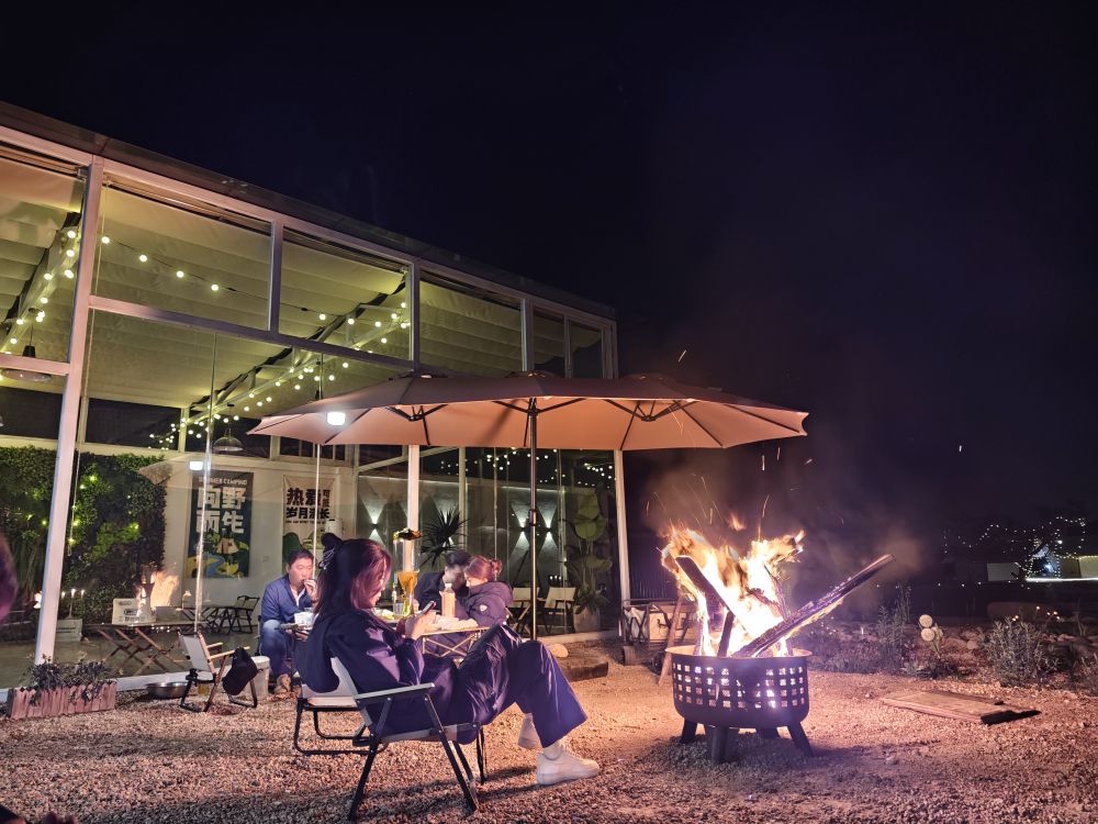 客人在星月手作農(nóng)場欣賞篝火。新華社發(fā)