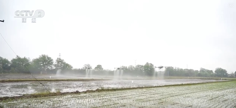 在另一處麥田里,植保無人機正在噴灑防治病蟲害的藥物。飛手們操縱控制器圈畫出相應范圍,植保無人機便能自動設計路線,精準高效完成噴灑任務,1天就能噴灑700多畝麥田。
