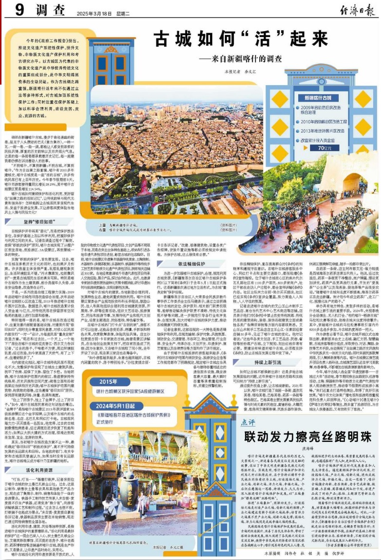 今年的《政府工作報告》提出,推進文化遺產(chǎn)系統(tǒng)性保護,提升文物、非物質(zhì)文化遺產(chǎn)保護利用和考古研究水平。以古城區(qū)為代表的非物質(zhì)文化遺產(chǎn)是中華優(yōu)秀傳統(tǒng)文化的重要組成部分,是中華文明綿延傳承的生動見證。作為古絲綢之路重鎮(zhèn),新疆喀什近年來不僅通過立法等多種形式,對古城加強系統(tǒng)性保護工作;同時注重在保護基礎(chǔ)上加以科學(xué)合理利用,建設(shè)宜居、宜業(yè)、宜游的古城。