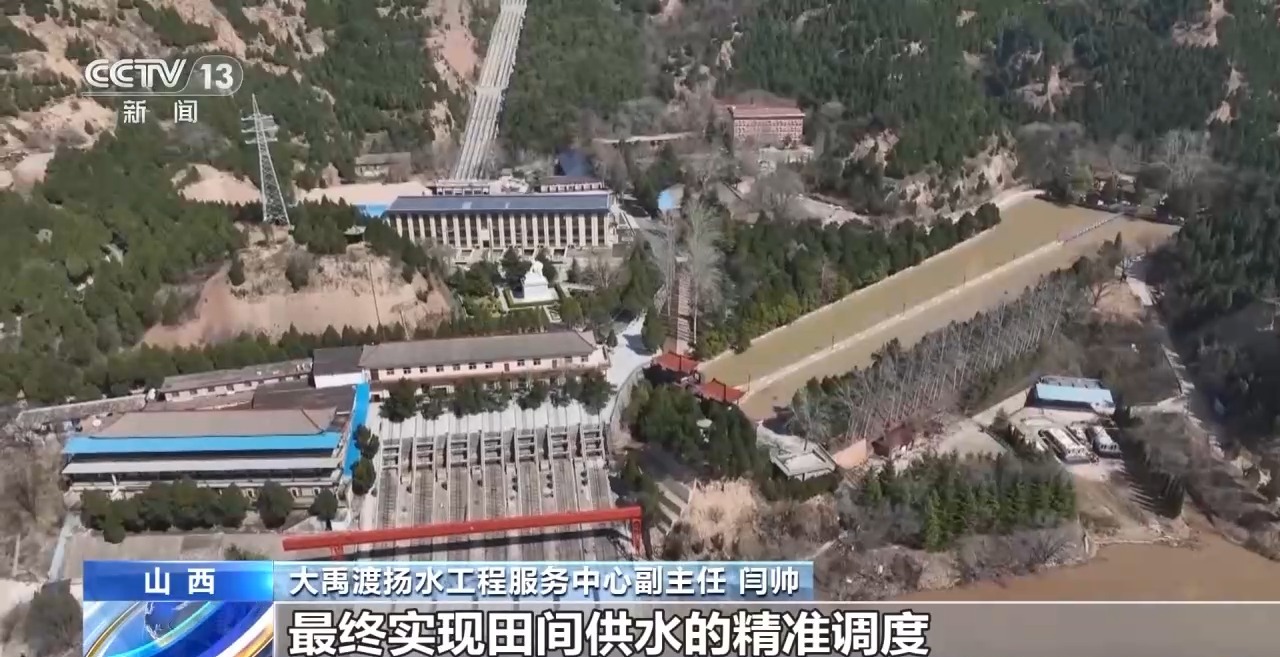 大禹渡灌區(qū)緊鄰黃河,經(jīng)過6級提水,黃河水最終爬升346米,沿著管道一路泵入總干渠。經(jīng)總干渠分水后,河水繼續(xù)分流至灌區(qū)465條干、支、斗渠,精準流入農田。村民們不僅能用手機下單水票,還能看到閘口的用水情況,讓每一滴流入農田的水都流得明明白白。