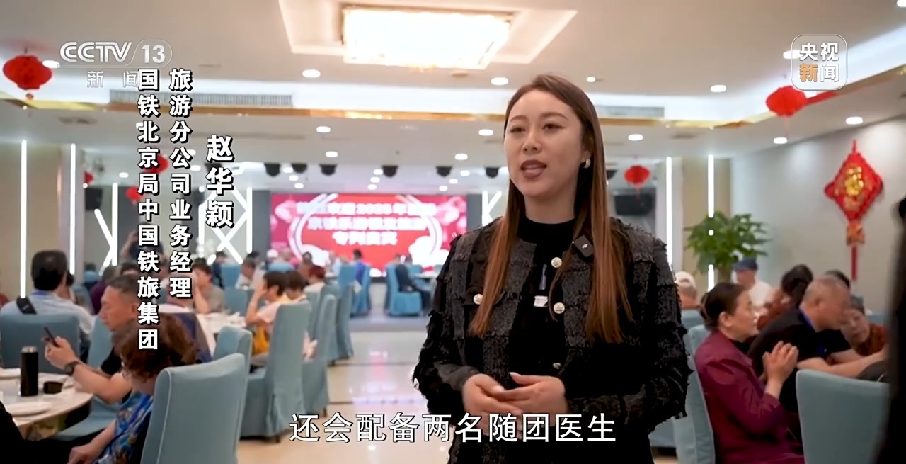 國(guó)鐵北京局中國(guó)鐵旅集團(tuán)旅游分公司業(yè)務(wù)經(jīng)理 趙華穎:像我們的包廂是在原有硬臥基礎(chǔ)上鋪位增加了八厘米的寬度,去掉了中鋪,只有上鋪和下鋪。上鋪我們?cè)黾恿嗽S多扶手,為了叔叔阿姨的健康考慮,還會(huì)配備兩名隨團(tuán)醫(yī)生,全程提供緊急救助。