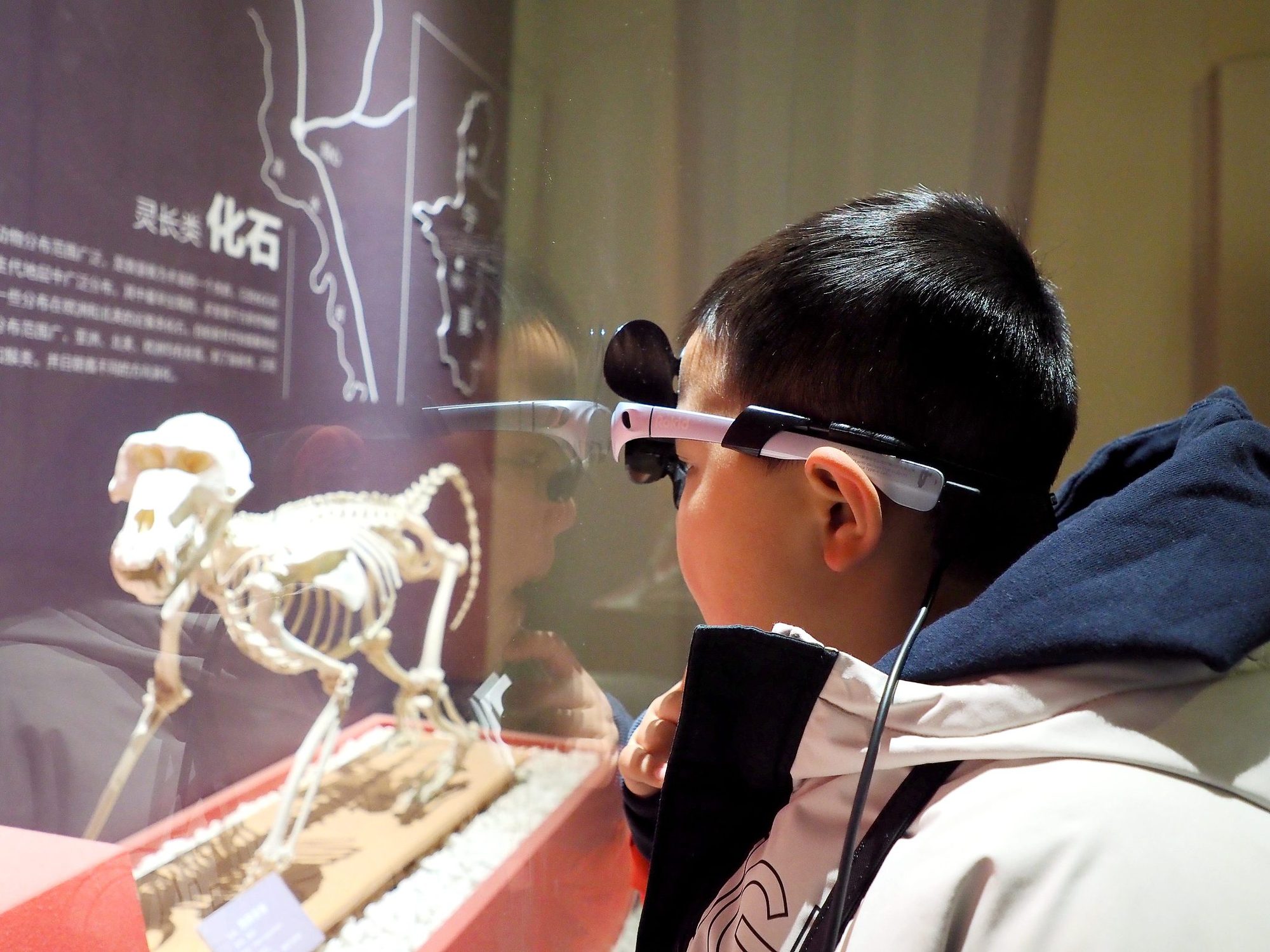 小朋友通過AR智能導覽眼鏡參觀展覽