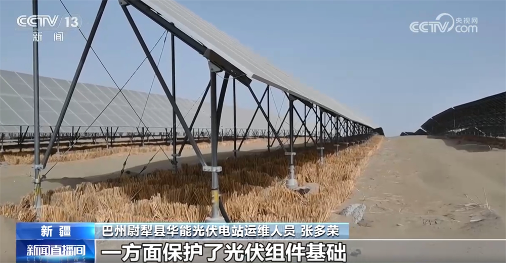 巴州尉犁縣華能光伏電站運(yùn)維人員張多榮稱:“大概兩個(gè)月時(shí)間就能抽穗發(fā)芽了,一方面保護(hù)了光伏組件基礎(chǔ)不被黃沙掩埋或掏空,另一方面改善了周?chē)h(huán)境?!?/p>