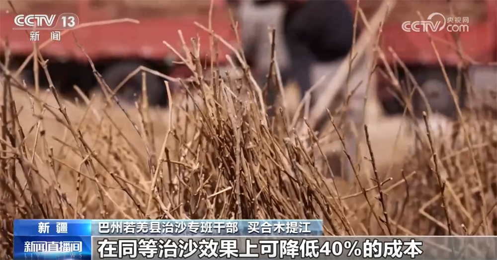 巴州若羌縣治沙專(zhuān)班干部買(mǎi)合木提江稱:“首次采用了“間隔治沙”這項(xiàng)創(chuàng)新治理模式,治理面積7.8萬(wàn)畝,在同等治沙效果上可降低40%的成本。”