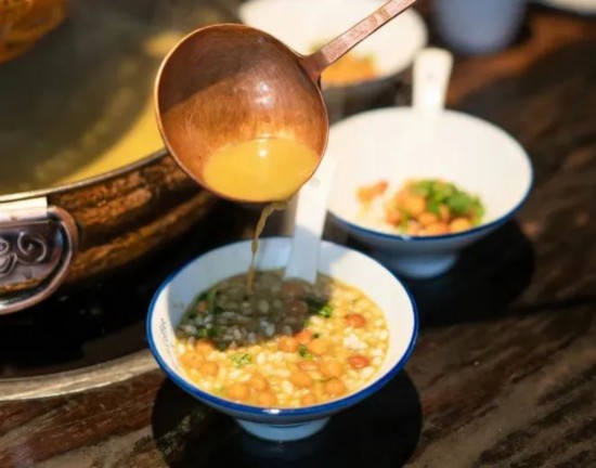 撒把炒米、花生、蔥花就是一碗廣西人的“咖啡”